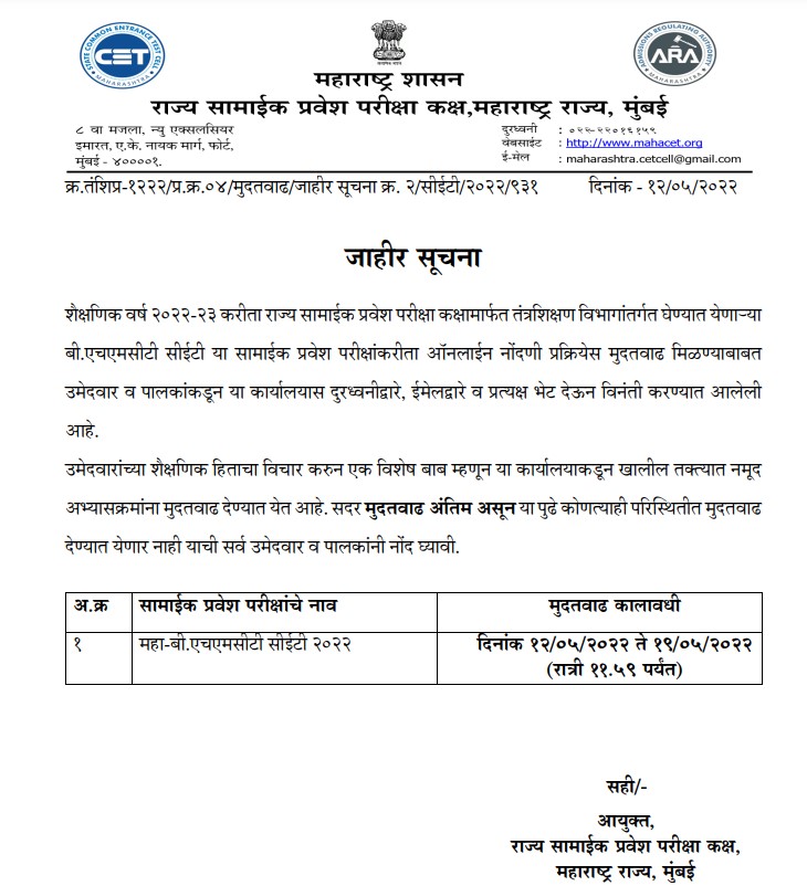 MAH BHMCT CET 2022 application extended till May 19, Check notification here