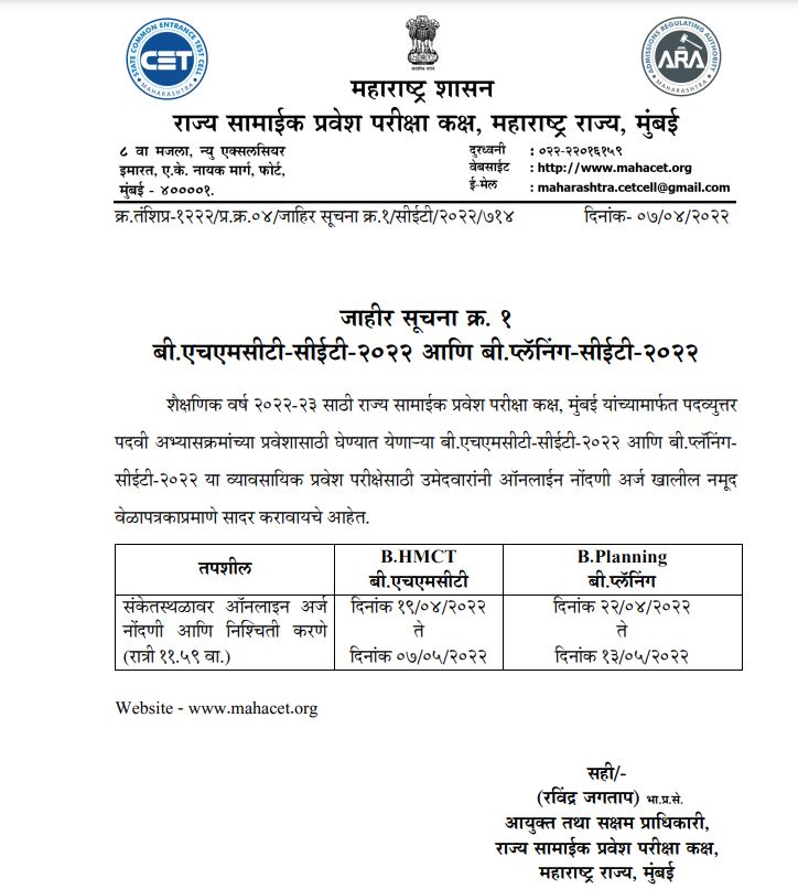 MAH CET Cell begins online applications for Undergraduate HMCT courses, Check here