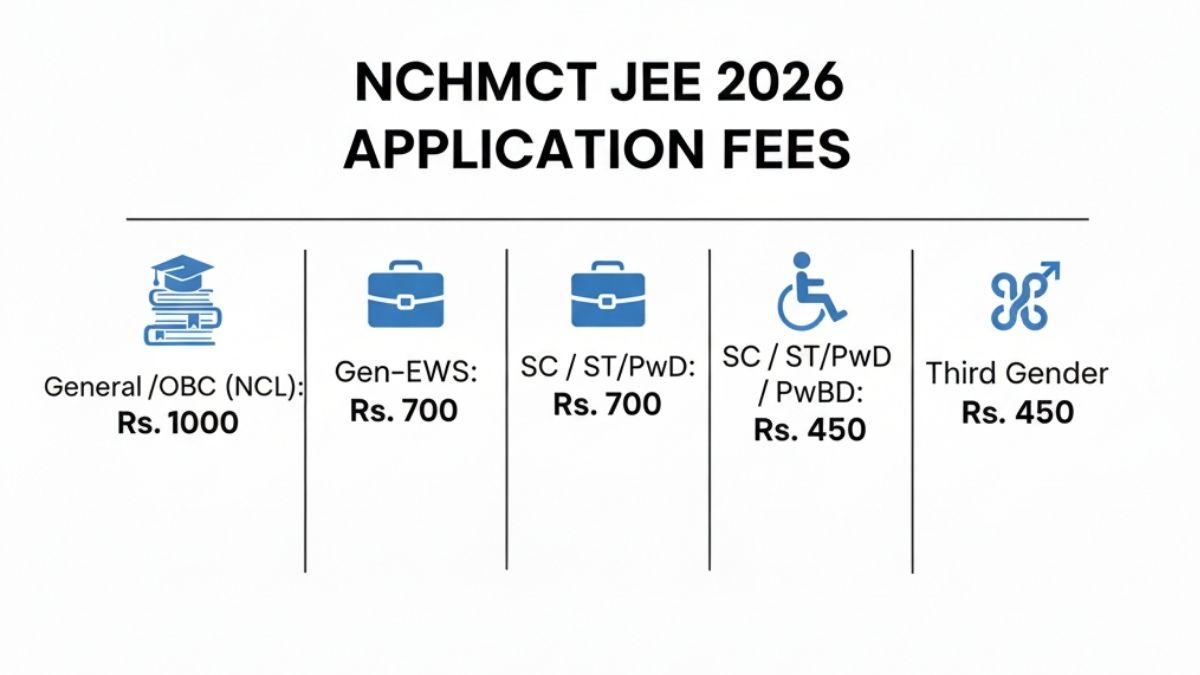 While filling NCHMCT JEE application form 2026, candidates must pay the exam fee online. The NCHMCT JEE exam fee varies depending on the student's category. The fee details are given below in simple terms: