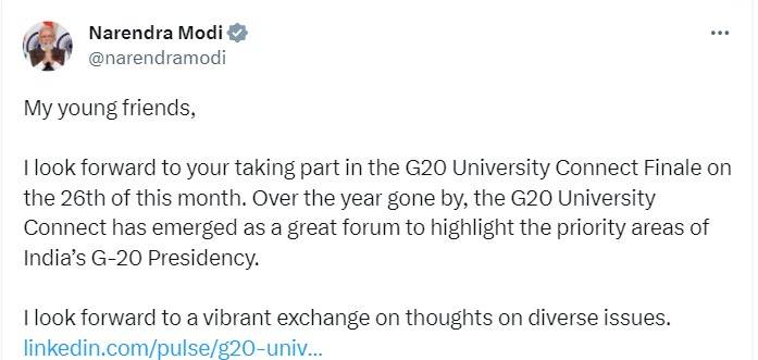 G20 University Connect Finale on Sep 26; PM Narendra Modi invites university students, young professionals