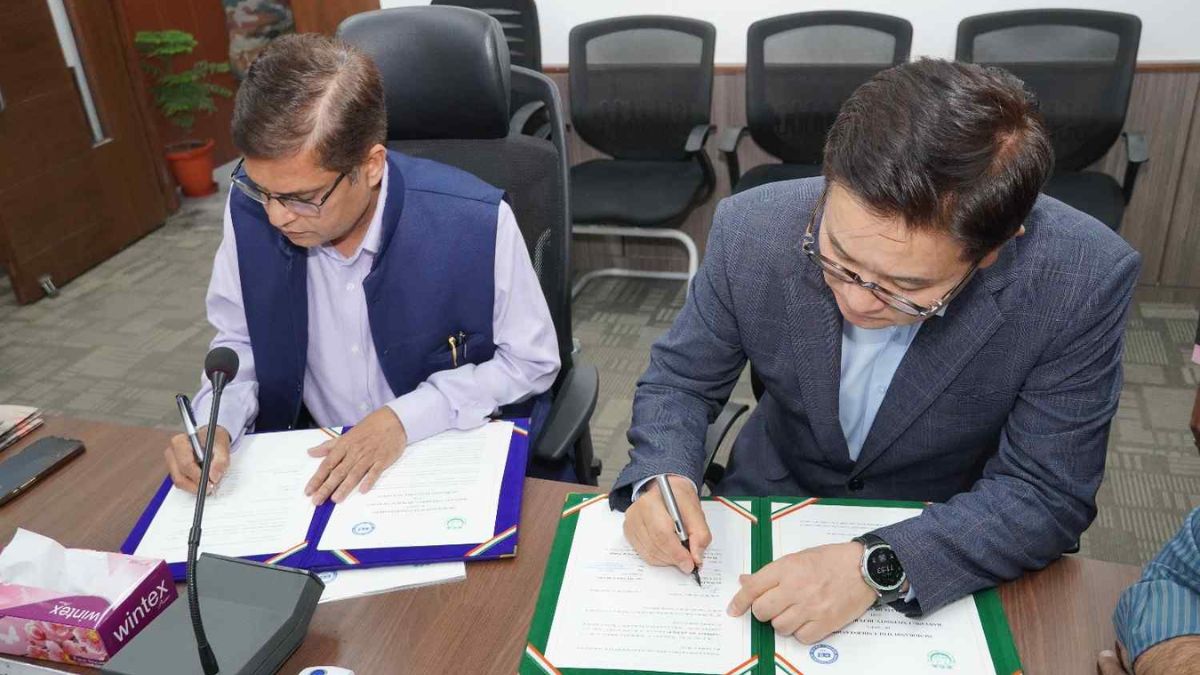 Prof. Md. Mahtab Alam Rizvi, registration of JMI and Dr. Ki-Jeong Lee, President of Hanyang University, signed the Memorandum of Understanding. During the event, Dr. Hansung Kim, Vice President of the Office of International Affairs at HYU, and Prof. Shahid Tasleem, Head of the Department of Foreign Languages, were present.