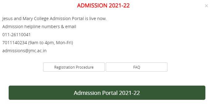 JMC Admission Portal went live on August 5, 2021. JMC aspirants must note that the last date to apply for Jesus and Mary College Admissions 2021 is August 31.