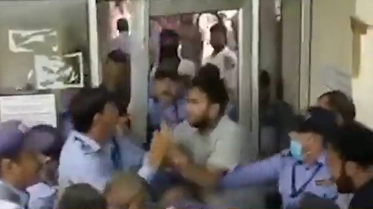According to the JNU administration, yesterday around 10.30 A.M. as many as 15 students barged into the Students' & Project Section of the University confining the staff to their seats only. They stopped the exit and entry of anybody in the Section as a result of which the office work and students' dealing came to a standstill.