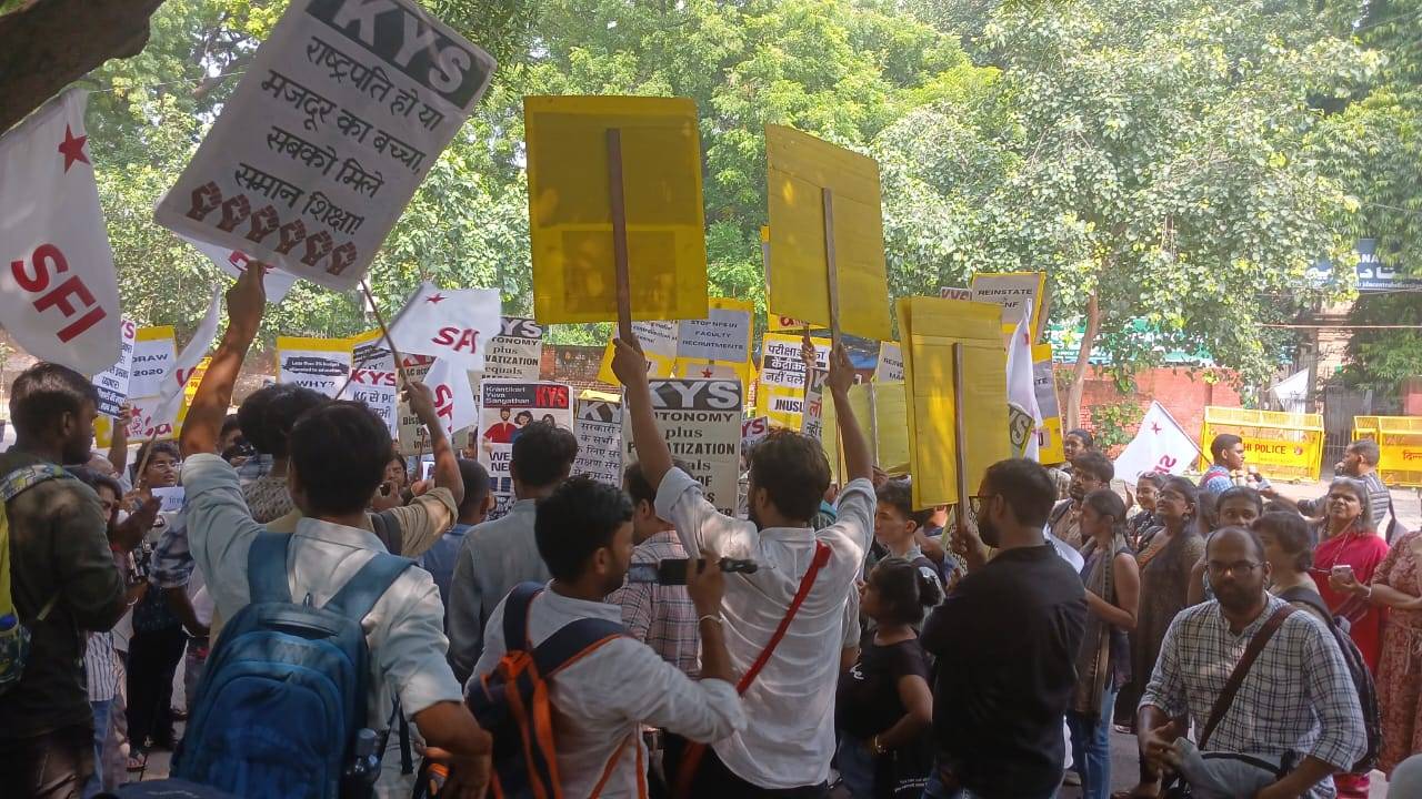 The protest was not a one-off event but part of a larger, ongoing opposition to NEP 2020, which critics argue will dismantle public education systems by promoting privatization, increasing the financial burden on students, and introducing policies that undermine academic freedom. Specific grievances include the merging of schools, hikes in fees, the introduction of self-financing courses, the implementation of the Four-Year Undergraduate Program (FYUP), and the phasing out of the MPhil program. Protestors also oppose the skewed student-teacher ratios, and the hiring of staff through platforms like GEM, which they claim leads to job insecurity.