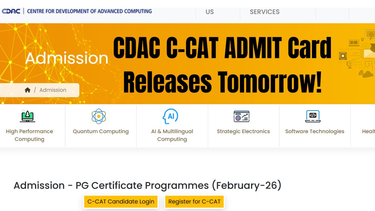 The Centre for Development of Advanced Computing (CDAC) will release the CDAC C-CAT 2026 admit card tomorrow, January 6, 2026. Applicants will be able to download their admit cards until January 10, 2026.