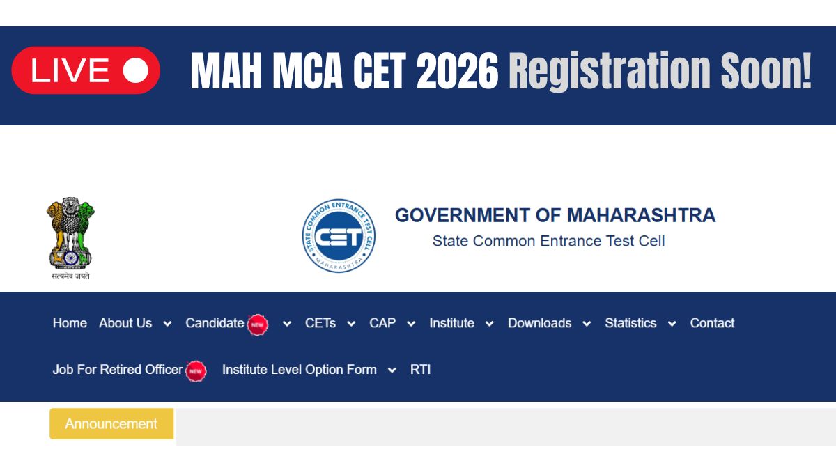 Check MAH MCA CET Registration 2026 Live Updates Below