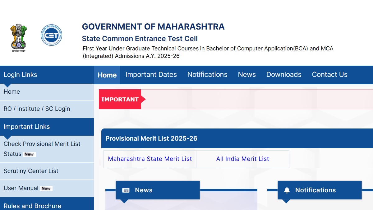 The Government of Maharashtra State Common Entrance Test (CET) Cell has released the provisional merit list for the MAH BCA CET CAP Round I for the year 2025-26. It is now available on the official portal https://cetcell.mahacet.org/cap-_2025-26/