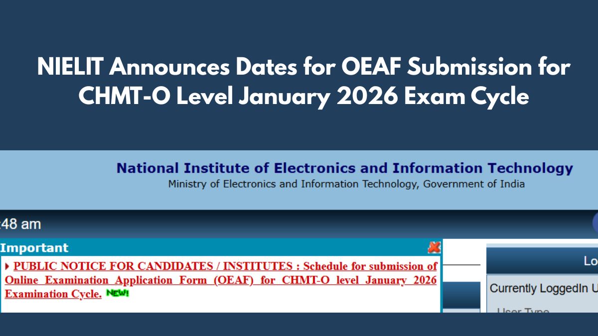NIELIT Announces Dates for OEAF Submission for CHMT-O Level January 2026 Exam Cycle