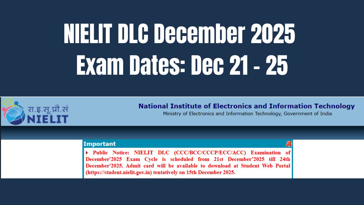NIELIT Announces DLC December 2025 Exam Dates: To be Conducted From Dec 21