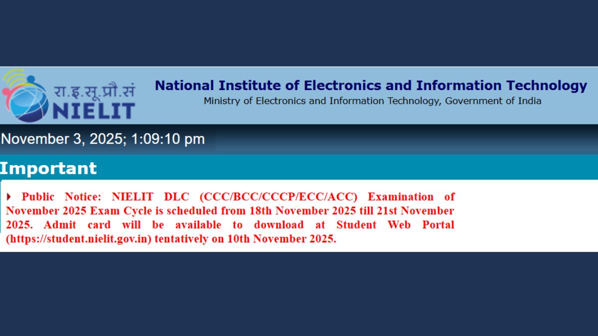 NIELIT Announces DLC November 2025 Exam Dates: To be Conducted From Nov 18