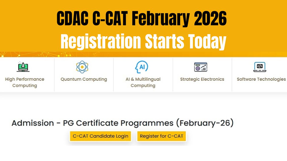 Centre for Development of Advanced Computing (CDAC) has initiated the registration process for C-CAT. The registration window is from November 27 to December 29, 2025. The CDAC C-CAT exam is scheduled to be conducted on January 10 and 11, 2026.