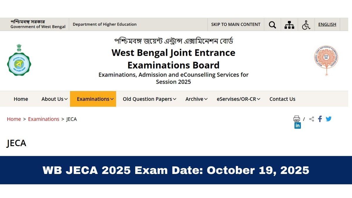 WB JECA 2025: Important Dates Announced; Exam on Oct 19, 2025