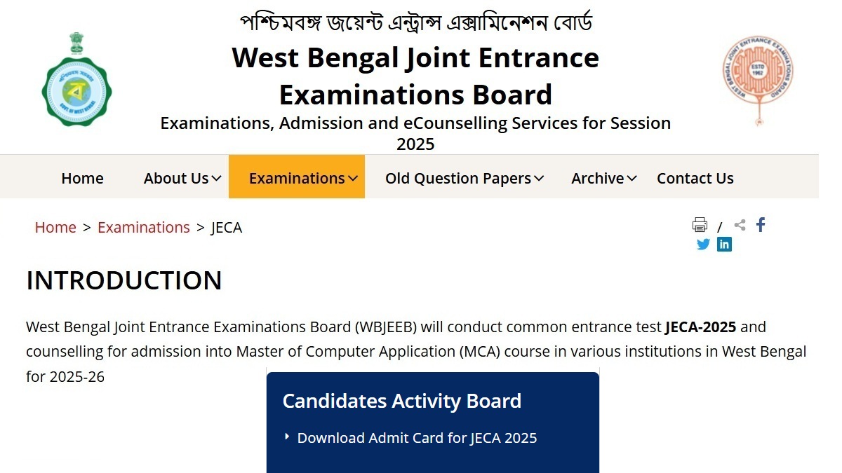Check WBJEE JECA 2025 Admit Card Live Updates