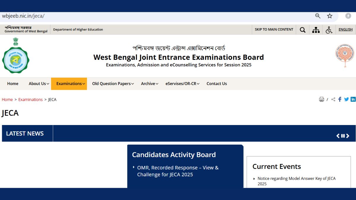 West Bengal Joint Entrance Examinations Board (WBJEEB) has enabled the provision for "OMR, Recorded Response View & Challenge" for the JECA 2025. Candidates can check their scanned OMR sheet and recorded responses. In case of any discrepancy, candidates can challenge it within the given time window.