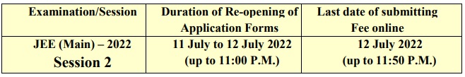 | JEE Main 2022 Application form last date |
