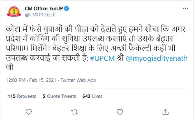 The decision to open such coaching classes was taken when during lockdown students were trapped in Kota Prayagraj due to Covid. The state government decided to provide similar facilities of coaching for students of the state for better results.