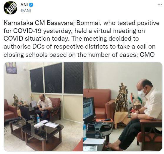 After testing positive for the novel coronavirus, CM Bommai, conducted a virtual meeting to assess the situation and the preparation. The meeting also decided to extend the precautionary guidelines on COVID until the end of the month.