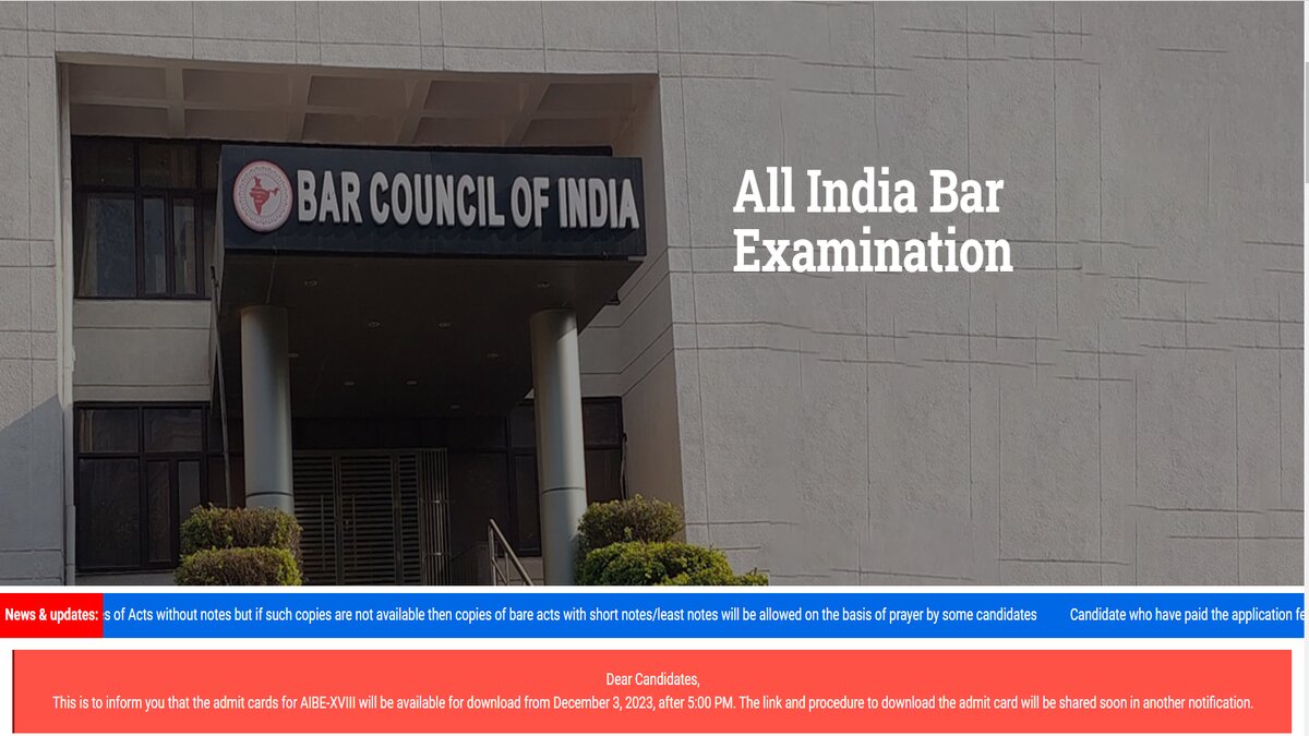 - AIBE 18 Admit Card (Live Updates): BCI Hall ticket out for download from December 3