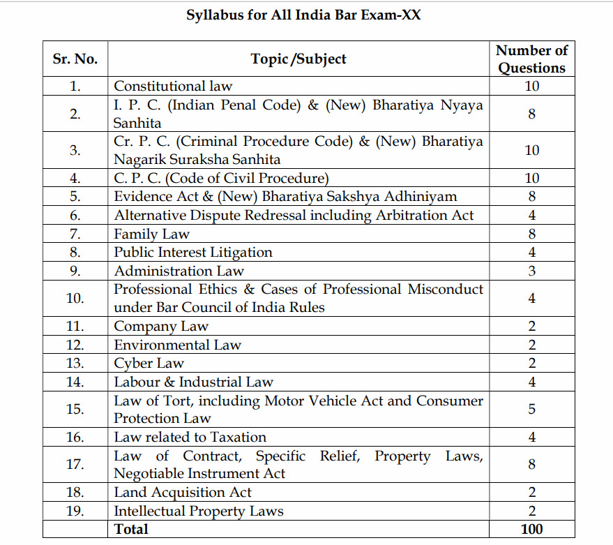 As per the weightage, the following topics are the most important for All India Bar Council: