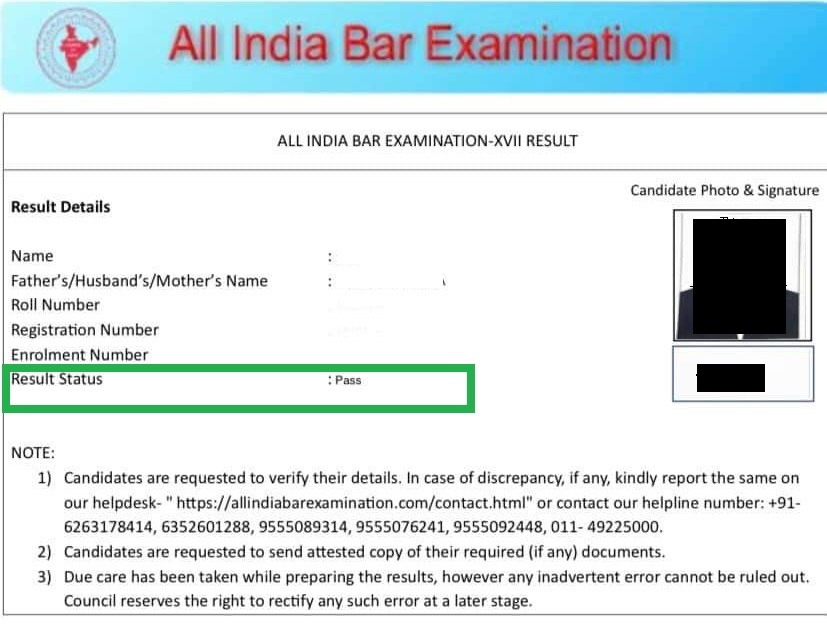 The exam authority will release the result same as regular result (with no mention of withheld/ fail status) so candidates can apply for Certificate of Practice from their enrolled state bar council without any extra hassle.