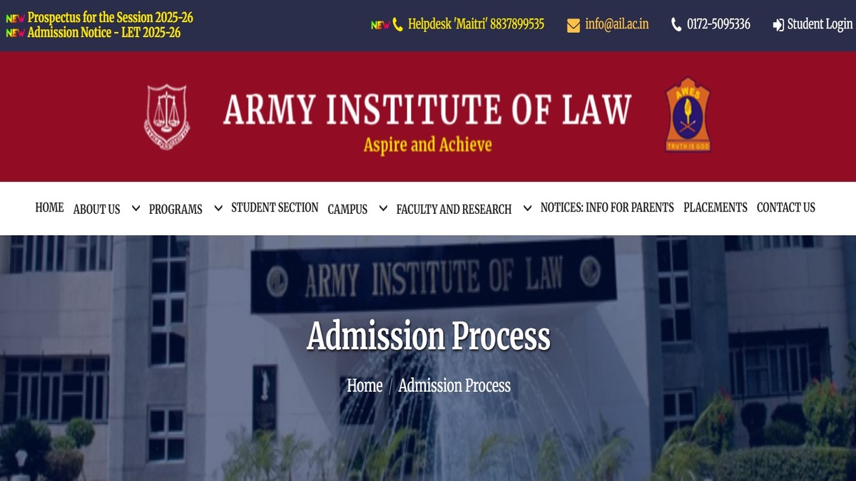 AIL LET 2025: The Army Institute of Law, Mohali has opened the AIL LET 2025 application window today, March 25, 2025, 10 AM onwards. Aspiring candidates are invited to apply for the entrance exam through the official website β ail.ac.in. Last date to register for AIL LET 2025 exam is April 26, 2025. Check the AIL LET 2025 important details below.
