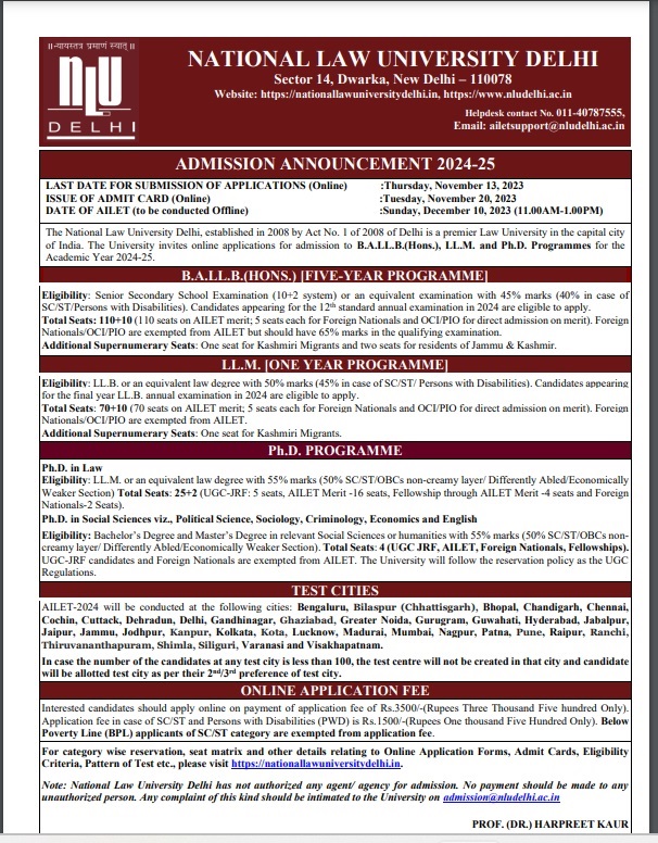 The National Law University of Delhi (NLUD) has commenced the AILET 2024 registrations. Law aspirants must note that AILET 2024 application materials and admission announcements are now available on the official website, nationallawunviersitydelhi.in.