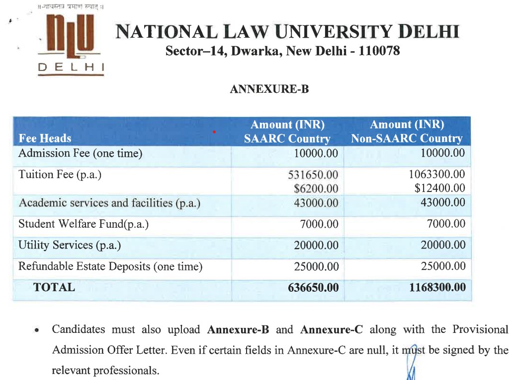 NLU Delhi has released the first merit list for LLM course for students belonging to the Foreign Nationals & OCI/PIO Category. Candidates whose names appear in the provisional merit list for LLM (One year) program will have to submit the fee on or before June 14, 2025, failure to which will cancel their admission. The detailed fee break-up is given below. The portal/ interface for payment has been activated from June 09, 2025, 6 PM for candidates.