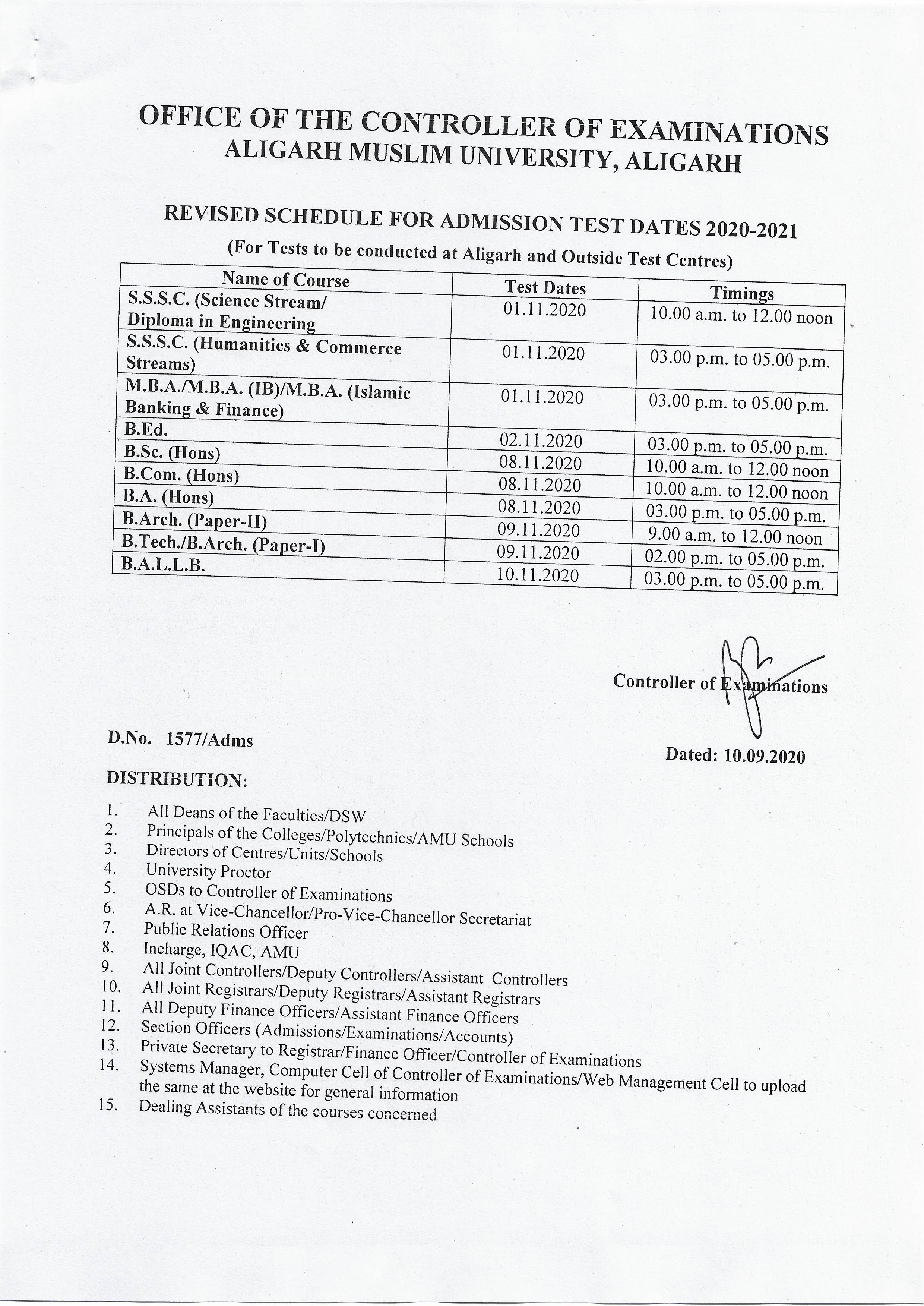 Aligarh Muslim University has announced the revised admission test schedule for AMU entrance exam 2020. The exams will now be held from November 1 onwards for all courses on different days. Candidates who have applied for AMU entrance exam 2020 have been awaiting the schedule for a long time now. Moreover, the exam authority has hinted that AMU entrance exam 2020 will be held in October tentatively. The national level entrance exam has been affected by COVID-19 pandemic just like other competitive exams. The exam authorities postponed the exams for a better situation. The exam is one of the most important parameters to shortlist candidates for final admissions besides academic eligibility criteria.