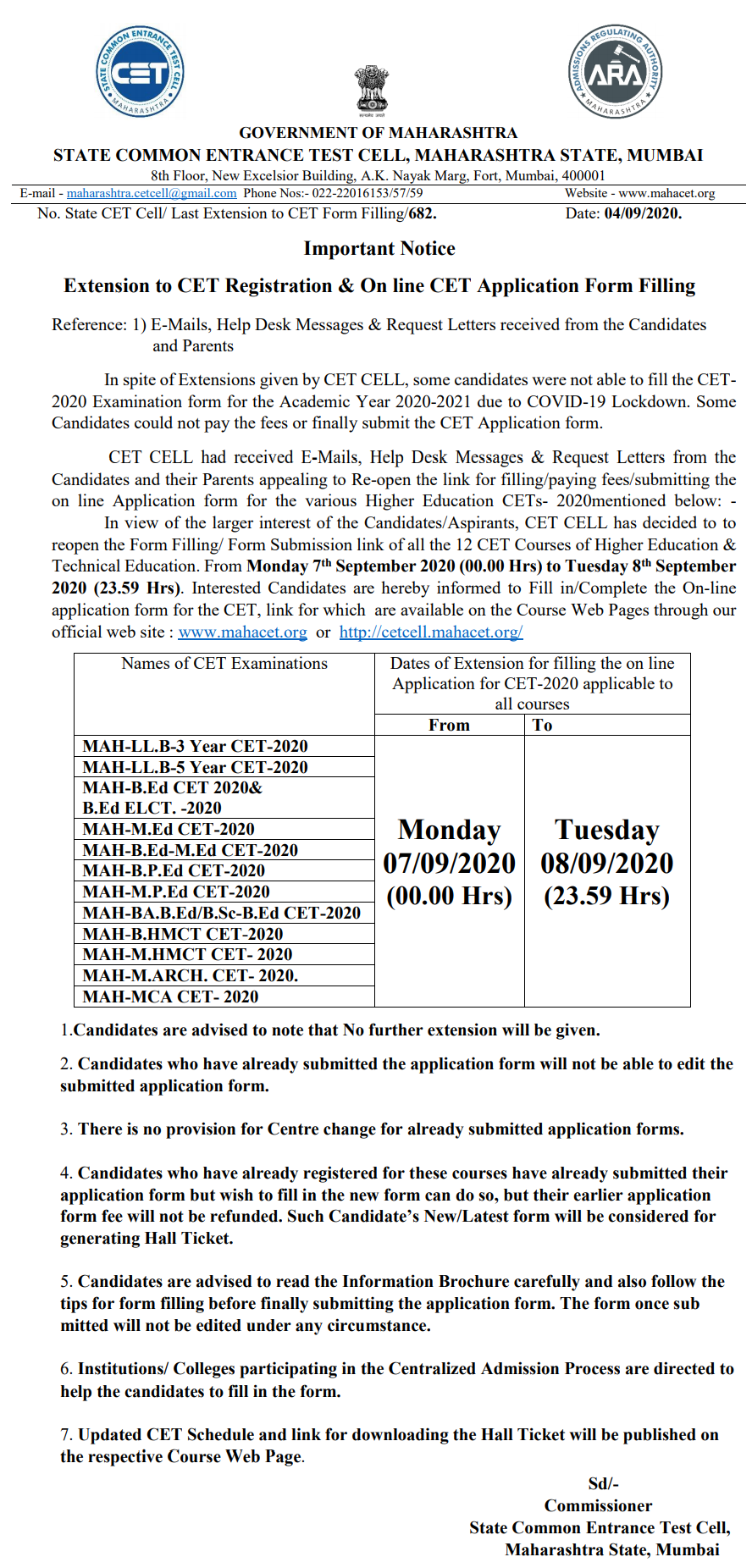 The Common Entrance Test (CET) Cell, Maharashtra has reopened the application window for MHCET Law 2020 and other CETs. The application forms of MHCET Law 2020 for the undergraduate law courses will be available until September 8 only. This is the last chance for candidates who want to appear for MHCET Law 2020 to apply for the examination. The application process is in online mode and, candidates have to complete the process by making fee payment.