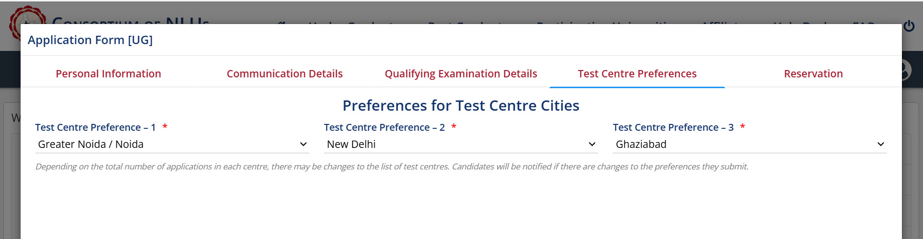 Candidates can fill a maximum 3 Test City Preferences during the CLAT application process. Refer to the image given below-