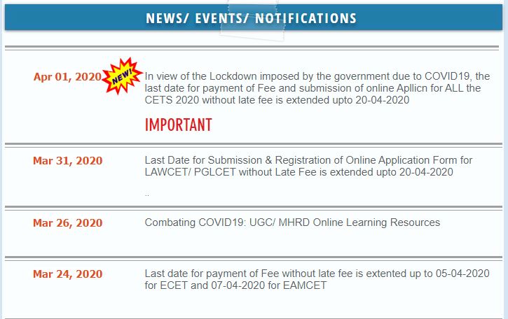 The State Council of Higher Education, Telangana has extended the last date of application for all Common Entrance Tests (CET) including TS LAWCET 2020 and PGLCET 2020. The decision to extend the application the last date has been taken considering the countrywide lockdown due as a precautionary measure against Coronavirus pandemic. Candidates can now apply for TS law entrance exams until April 20 without any late application fee. Earlier, the window to apply without late fee for LAWCET 2020 and PGLCET 2020 was available until April 6. The exam authority has published a brief notification regarding the same on its official website as under: