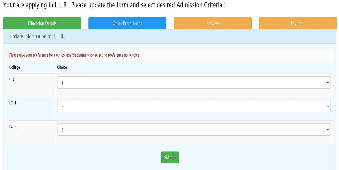 Candidates need not pay any charges to update their college preferences in the application form of DU LLB 2022.