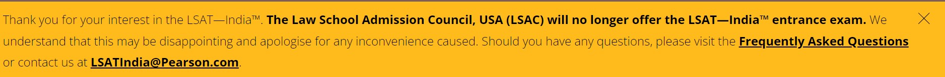 LSAC has made the business decision to discontinue LSAT India, citing their inability to achieve specific business objectives through the exam. As a result, LSAC will not administer LSAT India. As of now, LSAC has no plans to introduce any other law entrance exam in India.