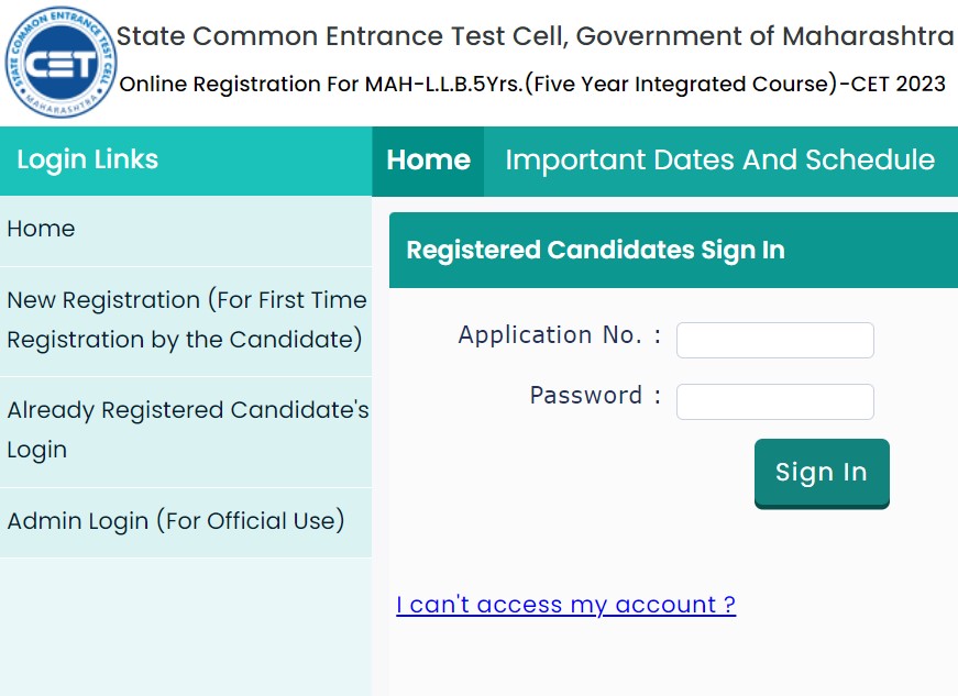 - Log in to the student registration portal of MHCET by using your "Application No." and the password that you generated during registration.