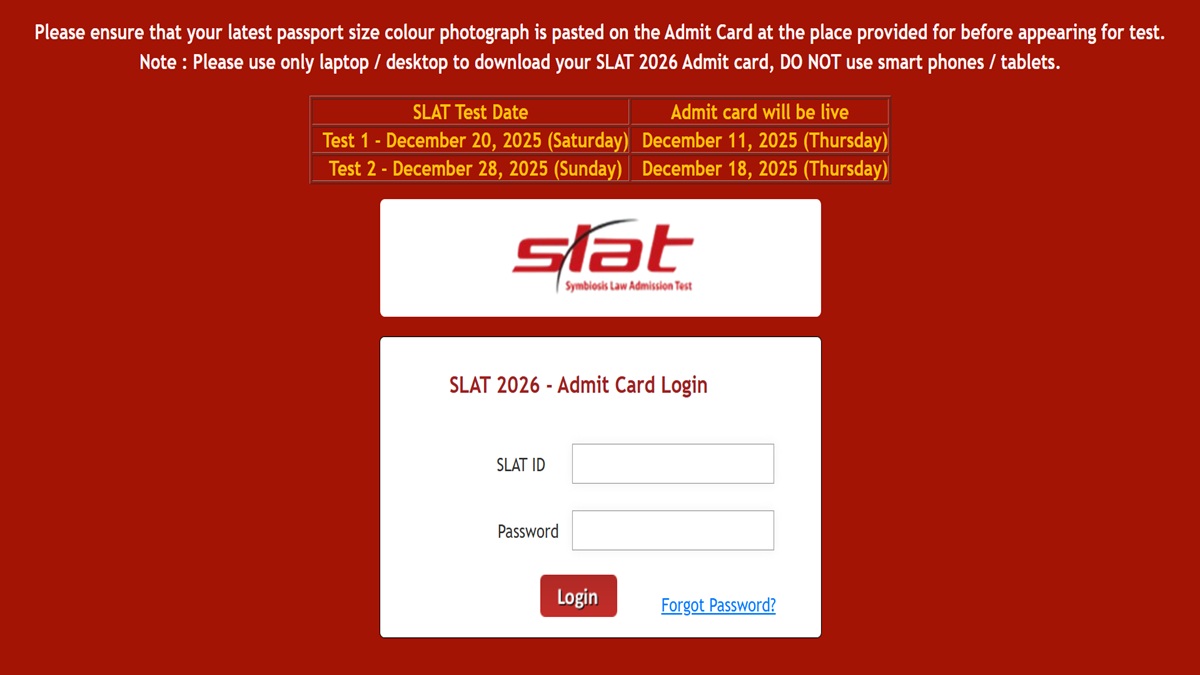 Students must note that SLAT Admit Card Login Window is now active.
