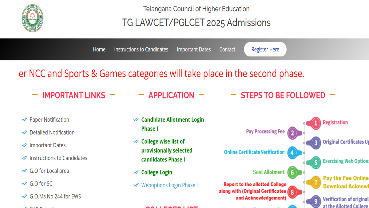 Follow the steps given below to check the seat allotment list for TS LAWCET 2025: