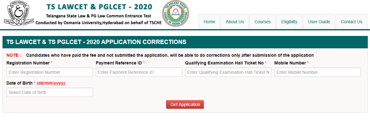 The Telangana State Council of Higher Education (TSCHE) has started the application correction facility of TSLAWCET 2020 and TSPGLCET 2020 from June 20 onwards. Candidates who have already filled up the applications of TS LAWCET 2020 or TS PGLCET 2020 can make correction until June 30. The application correction window has been enabled so that candidates can update their personal and academic details. Moreover, they can change their test centres and upload correct documents through this correction window.