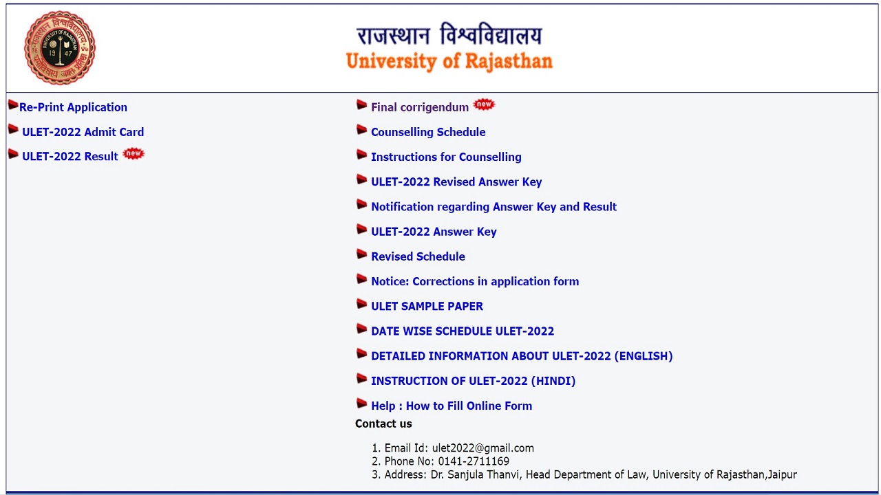 The University of Rajasthan (UNIRAJ) has released the counselling scheduled and instructions for ULET 2022. Candidates who qualified the entrance exam have to appear for the counselling process of ULET 2022 as per their category schedule. Check the ULET 2022 counselling and seats for each category mentioned below: