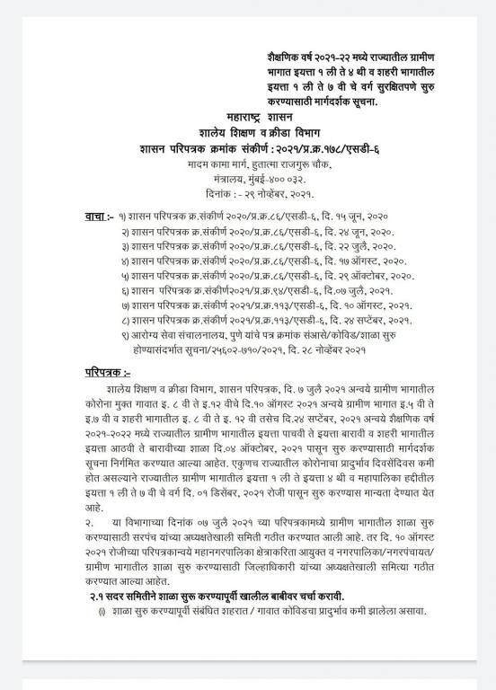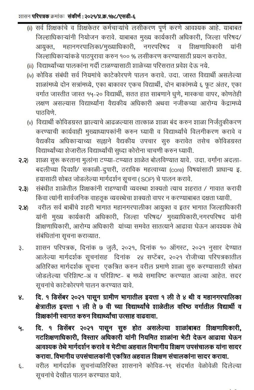 Guidelines for Maharashtra School Reopening