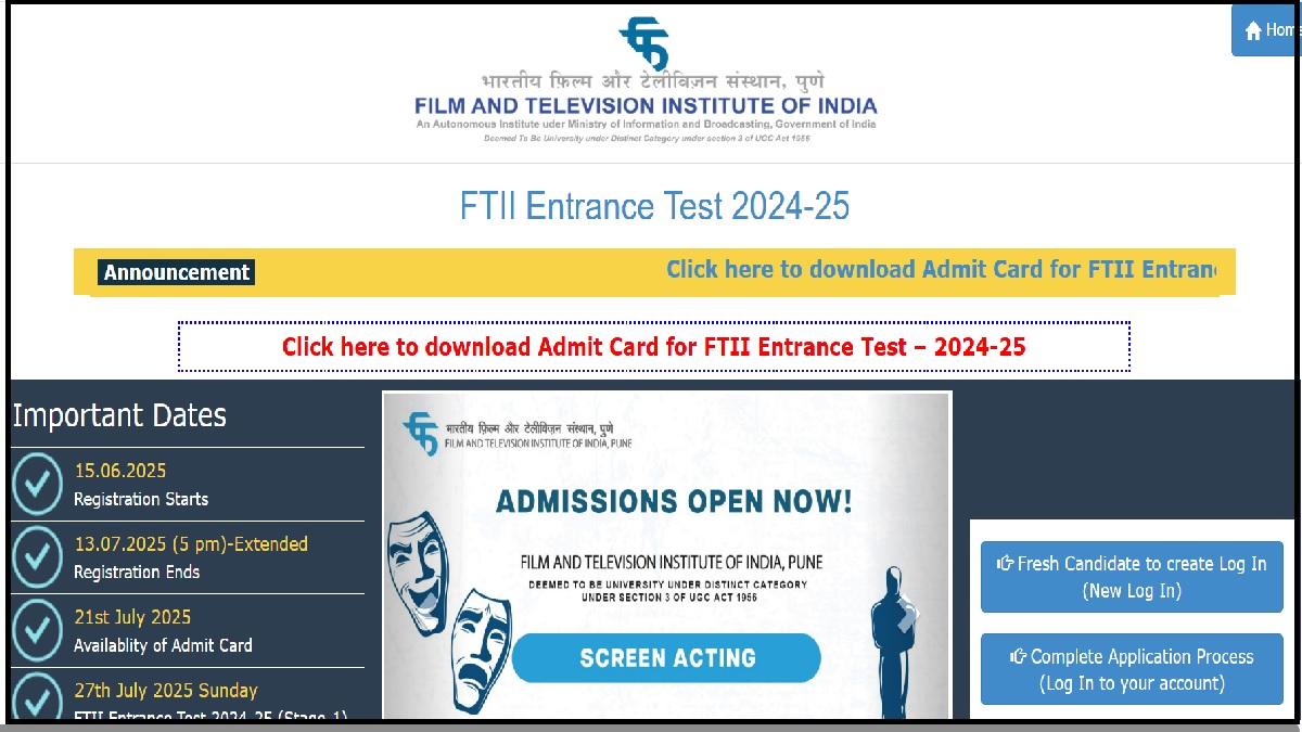 Direct Link to Download: https://applyadmission.net/ftii2025/FTII2025EntranceAdmitCardTest.aspx
