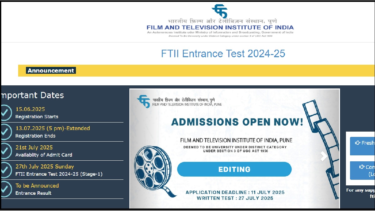 Step 1: Visit the official website: applyadmission.net/ftii2025/.