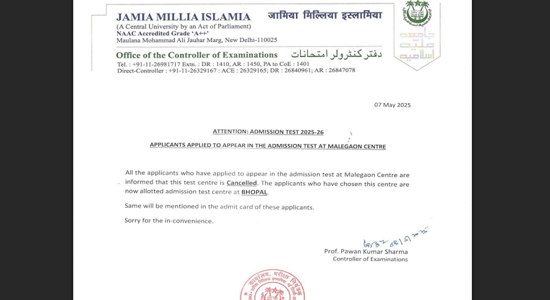JMI 2025 University Admissions; Malegaon Exam Centre Cancelled