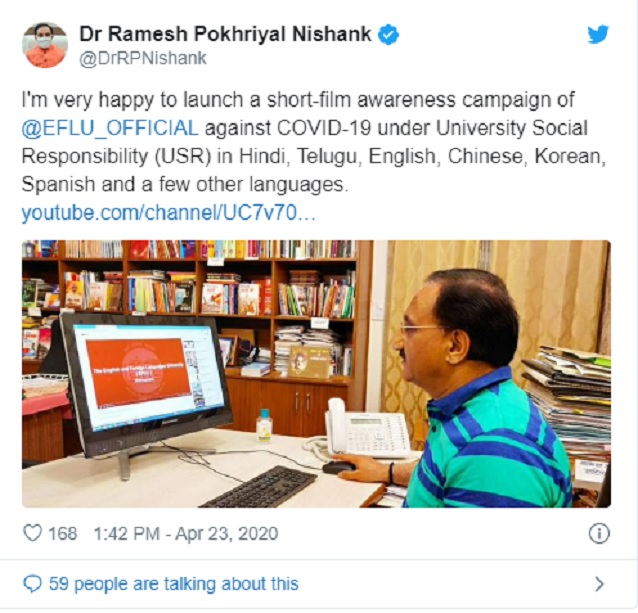 The Minister launched the short films on social media platform Twitter and also applauded the initiative taken by EFLU under University Social Responsibility (USR) scheme.