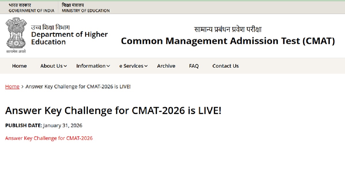 NTA CMAT answer key 2026 is now available for download. Candidates who appeared for the exam on January 25 can check their CMAT response sheet 2026 by logging into their account. Objection window has also been opened. If any candidate feels that the official answer key of any question is wrong, they can raise objection against it, until February 2, 2026.