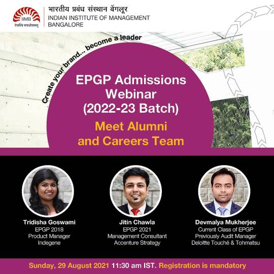 Candidates interested in IIM Bangalore Admissions 2021 for the one-year MBA programme can participate in the same online. While participation in the webinar is free of cost, registration is mandatory for all.