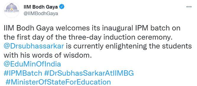 IIM Bodh Gaya 1st IPM Batch: Indian Institute of Management (IIM) Bodh Gaya welcomed the first batch of its Integrated Programme in Management (IPM) via virtual mode on October 5. According to the information shared by the B-school, IIM Bodh Gaya enrolled a total of 72 students (51 male and 21 female) under its IPM programme. The virtual inauguration programme was attended by eminent personalities such as Subhas Sarkar, Minister of State for Education, Dr Vinita Sahay, Director, IIM Bodh Gaya and Dr Raveesh Krishnankutty, Chairperson, IPM.