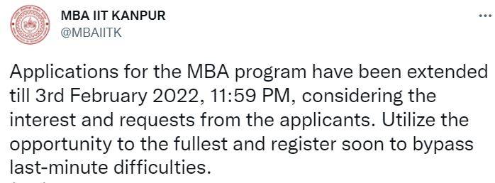 Candidates interested in IIT Kanpur MBA admissions 2022 must note that the last date to apply has been extended until February 3.