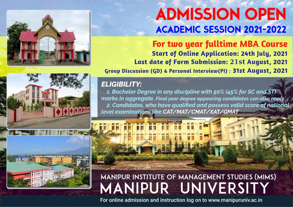 Applicants interested in Manipur University Admissions 2021 must note that the last date to apply for the management programmes is August 21, 2021.