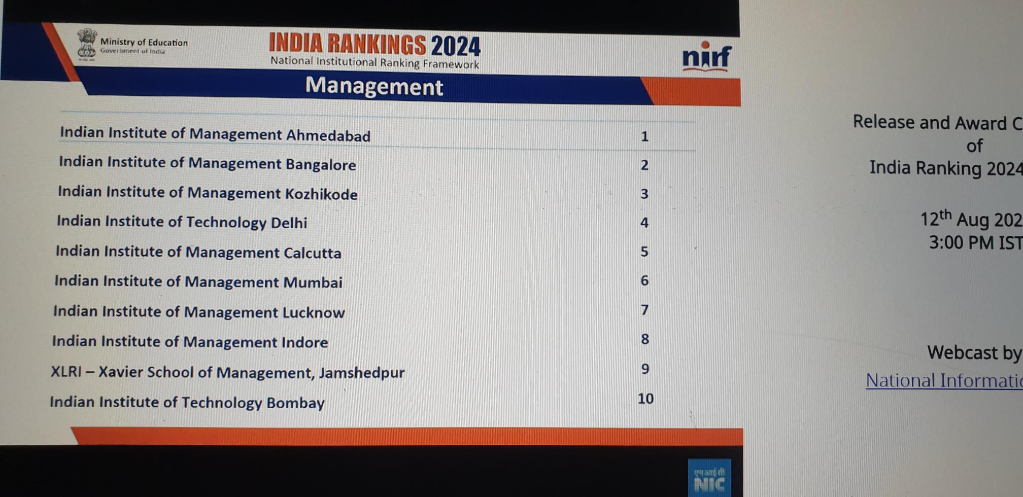 NIRF Management Ranking 2024