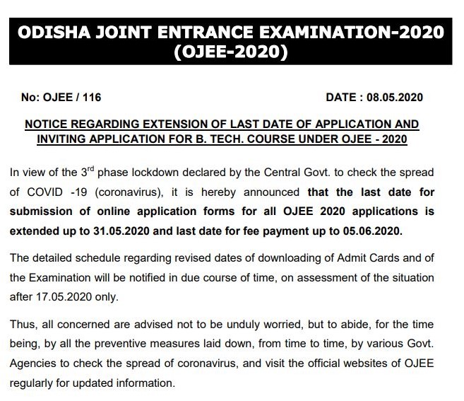 The last date to apply for OJEE 2020 exam extended further. Read the article below to know the revised dates, exam pattern, steps to fill application form, etc.